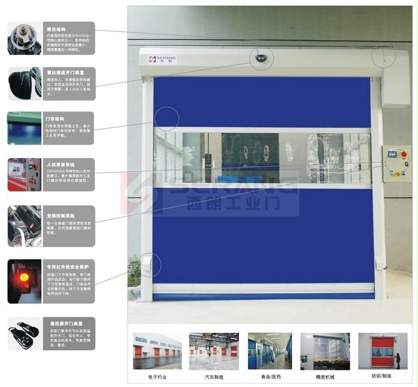 杭州西朗门业生产的雷达自动感应快速门是SERANG公司根据市场需求,推出的具备高速隔断功能的新型快速门,整体外框采用静电喷塑处理的冷轧钢板,美观大方。控制系统采用异步电机及变频装置,同时配予高亮蓝屏LCD显示器做为人机对话窗口,具有标准性、易操作性及低廉的维护费用等特性,确保常年无故障运行15万次以上,日均500次以上,并提供安装后一年内上门全面保修服务。